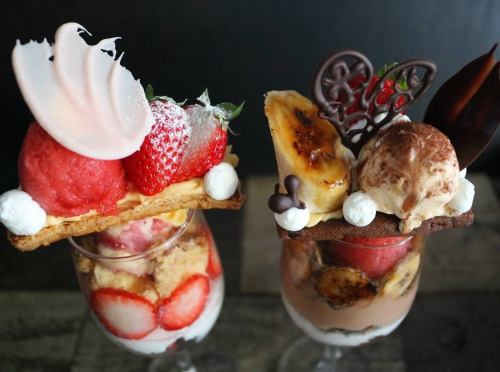 鎧塚シェフの元で修業したパティシエが贈る珠玉のスイーツをご用意!季節のフルーツを使用したパフェやケーキをご用意しております!最新情報はインスタをチェック♪期間限定ですのでこの期間にぜひご堪能下さいませ!
